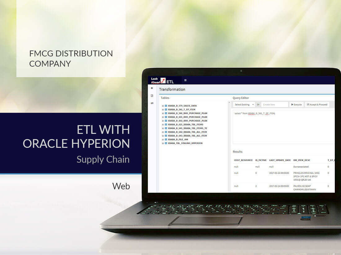 We build a custom Extract-Transform-Load tool for facilitating Hyperion Integration with Oracle De-mantra. Developed in JAVA for applying transformations to resolve Data formats issues while providing the high level of Performance.